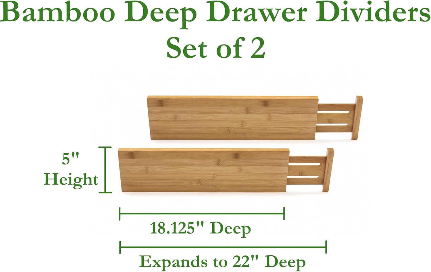 8897 Bamboo Wood Custom Fit Adjustable Deep Kitchen Drawer Dividers, Set of 2
