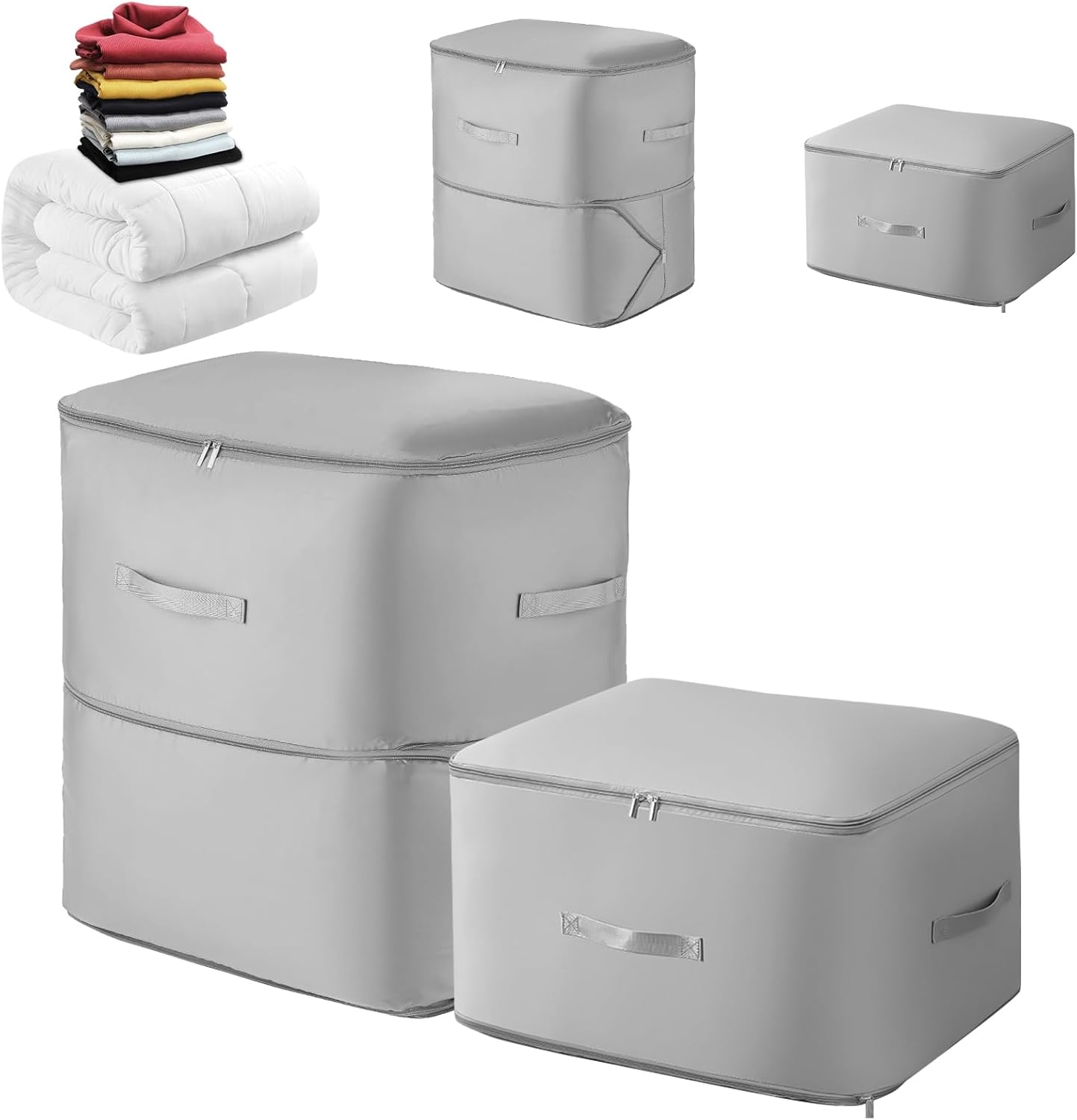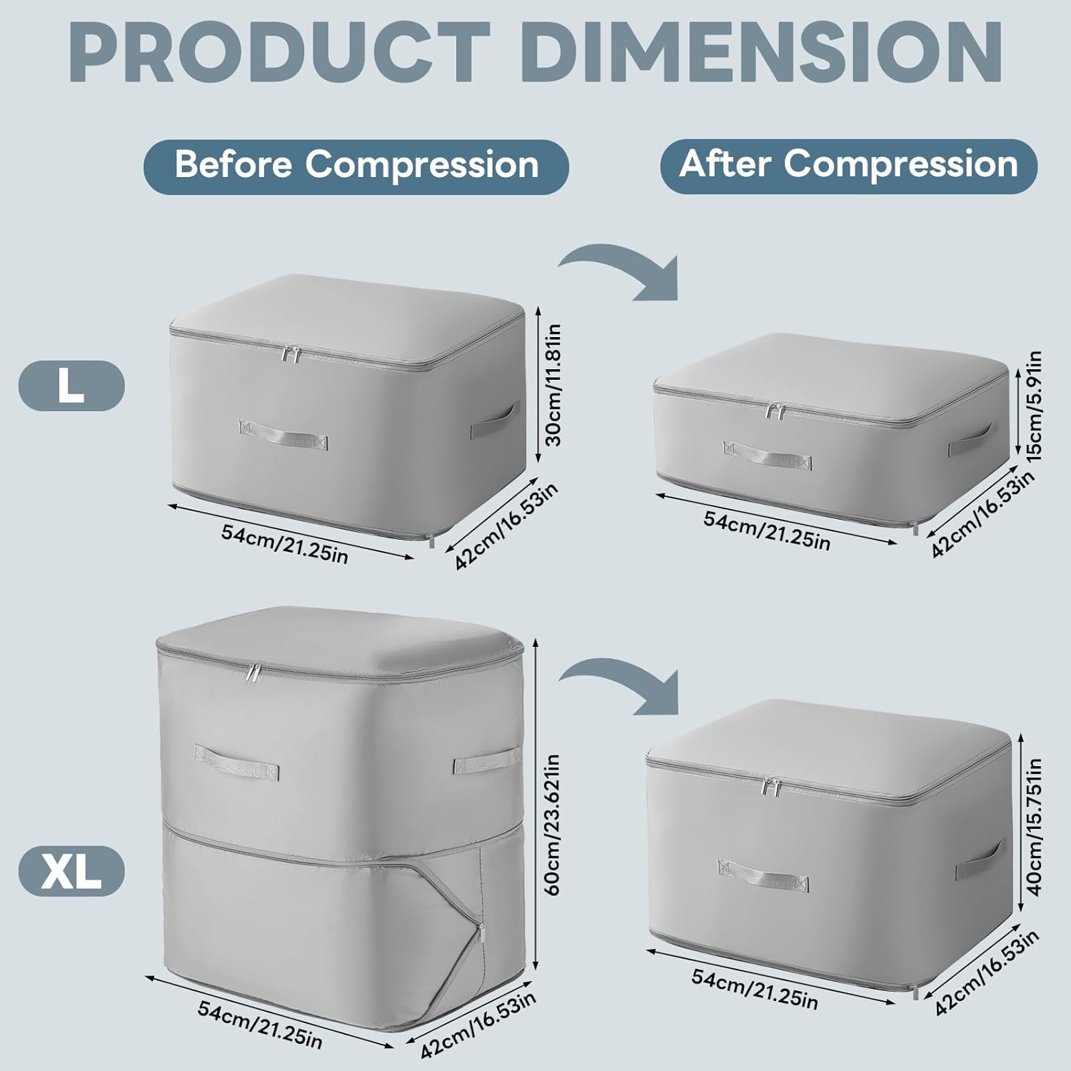 • 【Perfectly Size】Our organizer bag offer ample capacity without being cumbersome or space-consuming. Each bag can hold two large winter comforter or 6-8 down jackets. They are perfectly suited for decluttering your wardrobe and keeping your seasonal items organized. While it expands to fit larger loads, its compression feature helps reduce bulk when needed, giving you more flexibility in managing your storage space