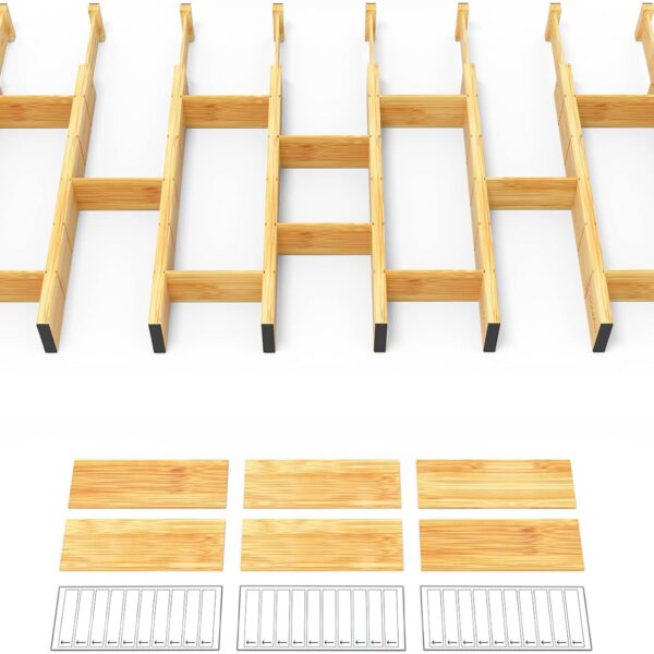 8897 Bamboo Wood Custom Fit Adjustable Deep Kitchen Drawer Dividers, Set of 2